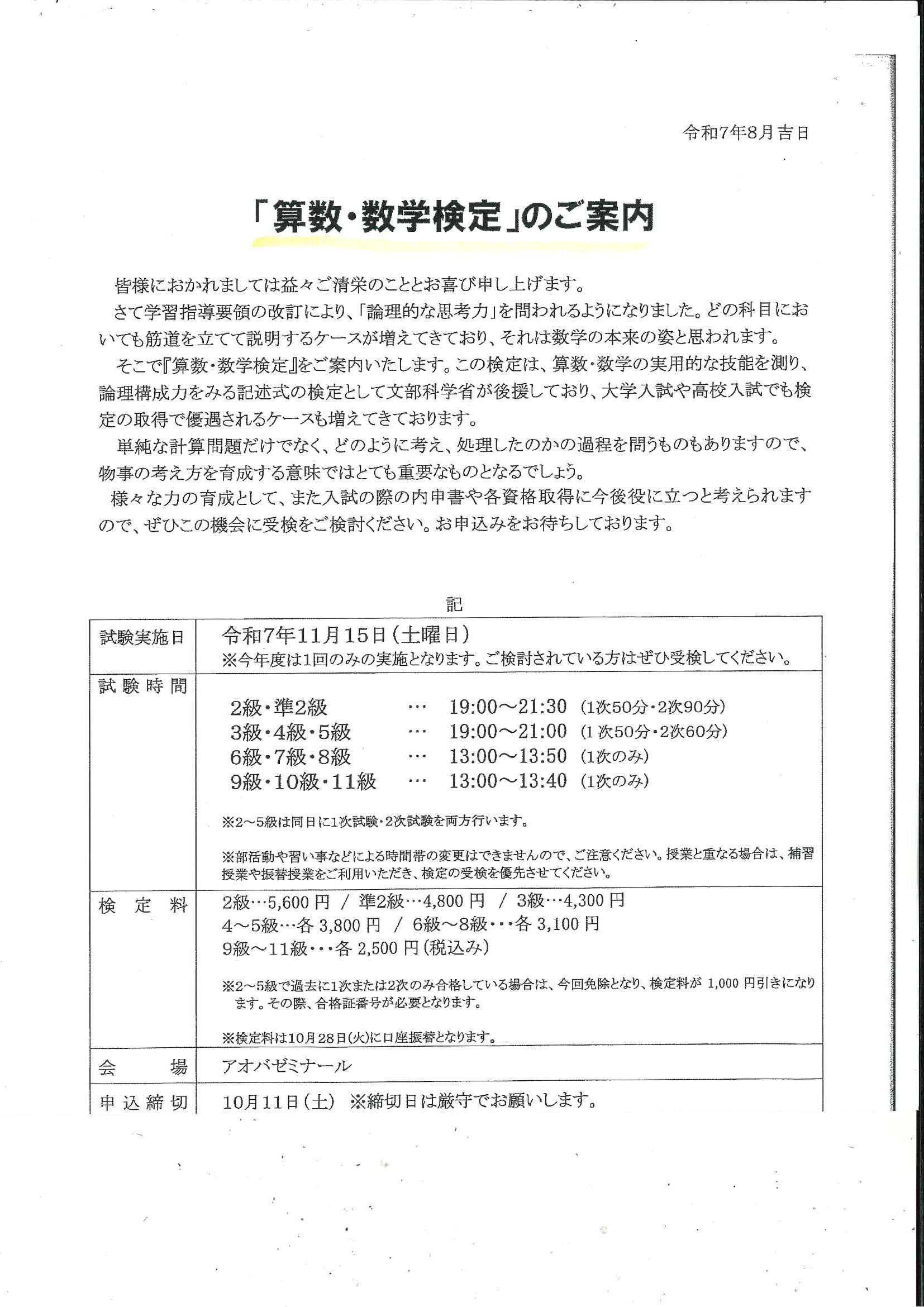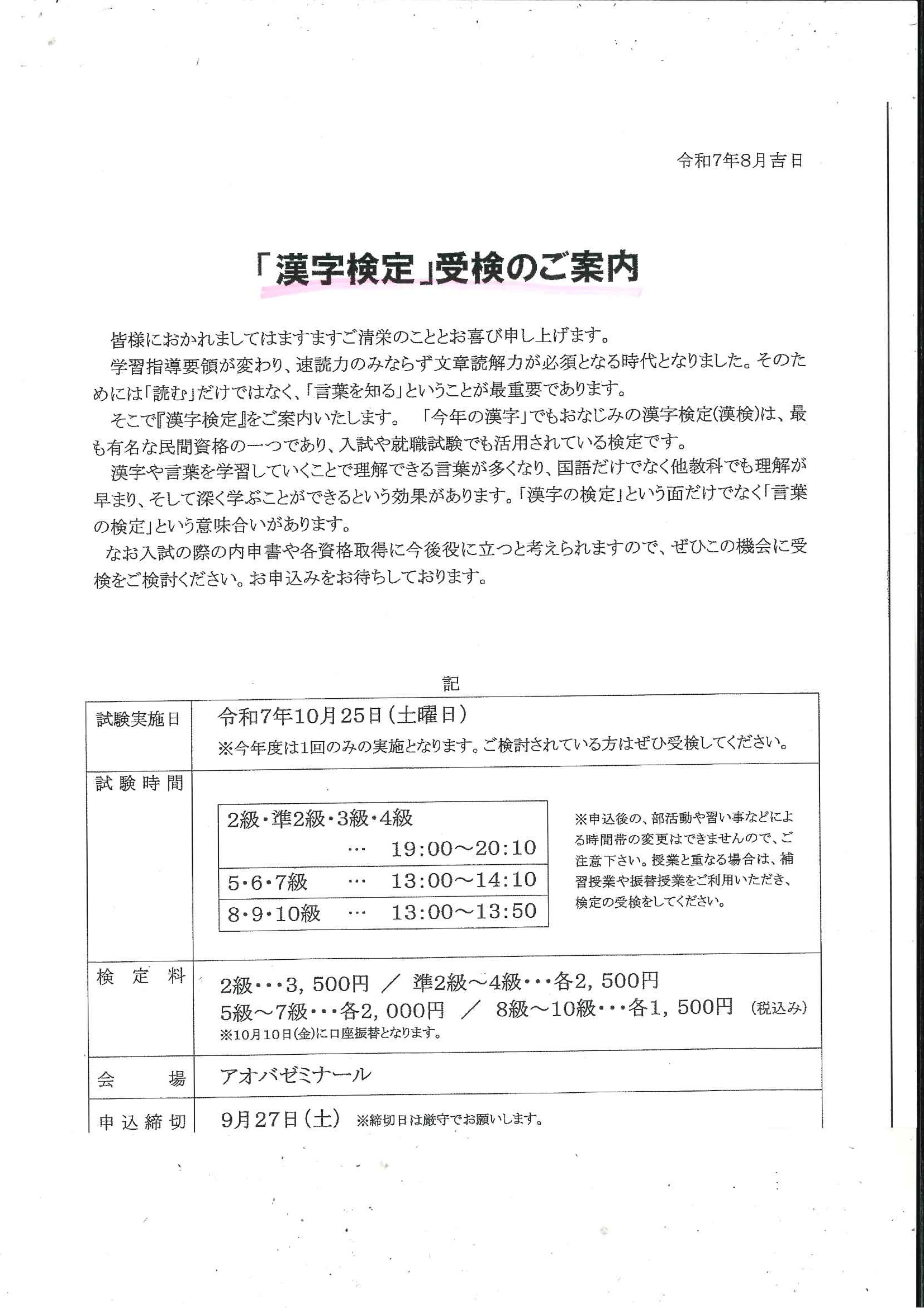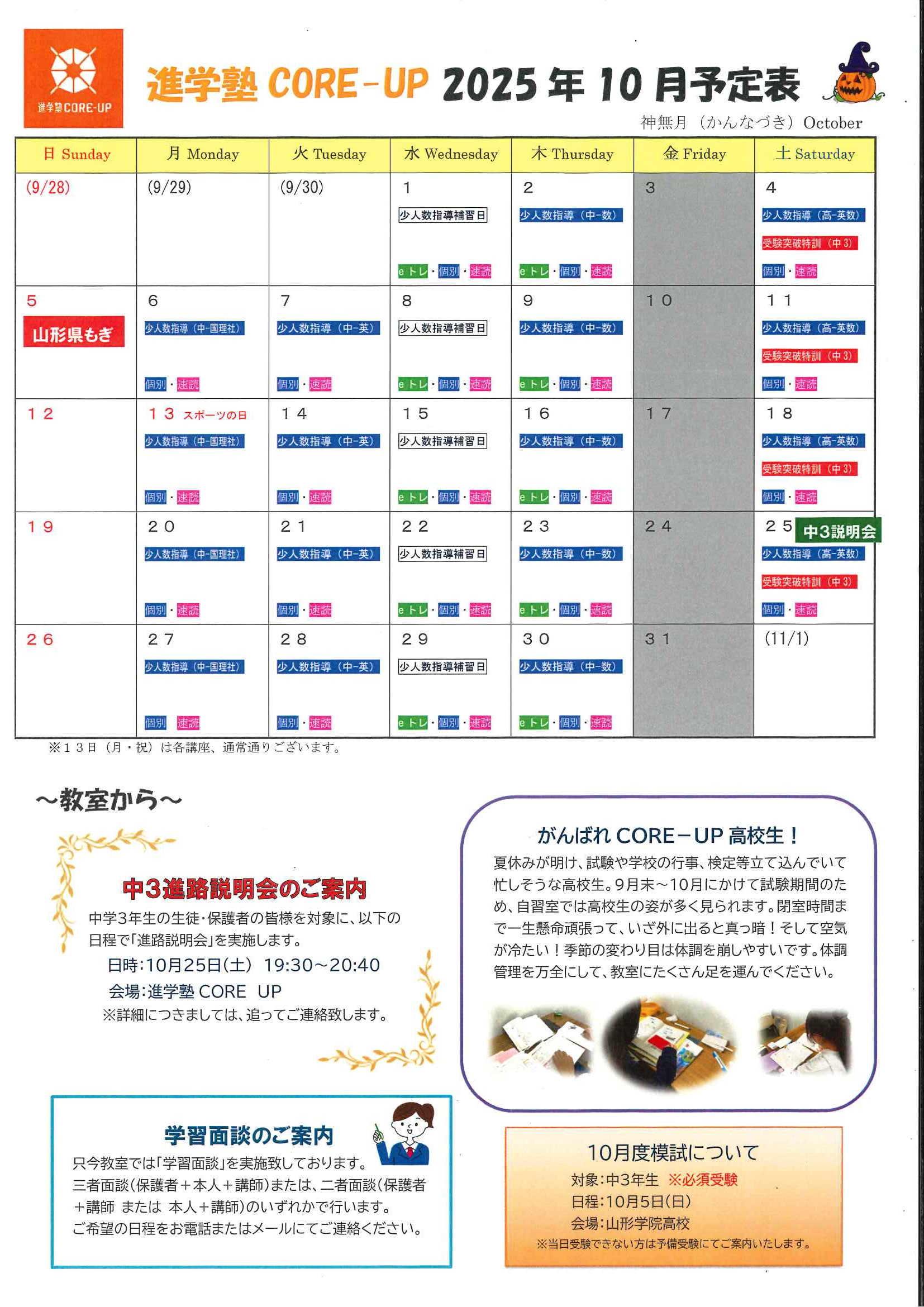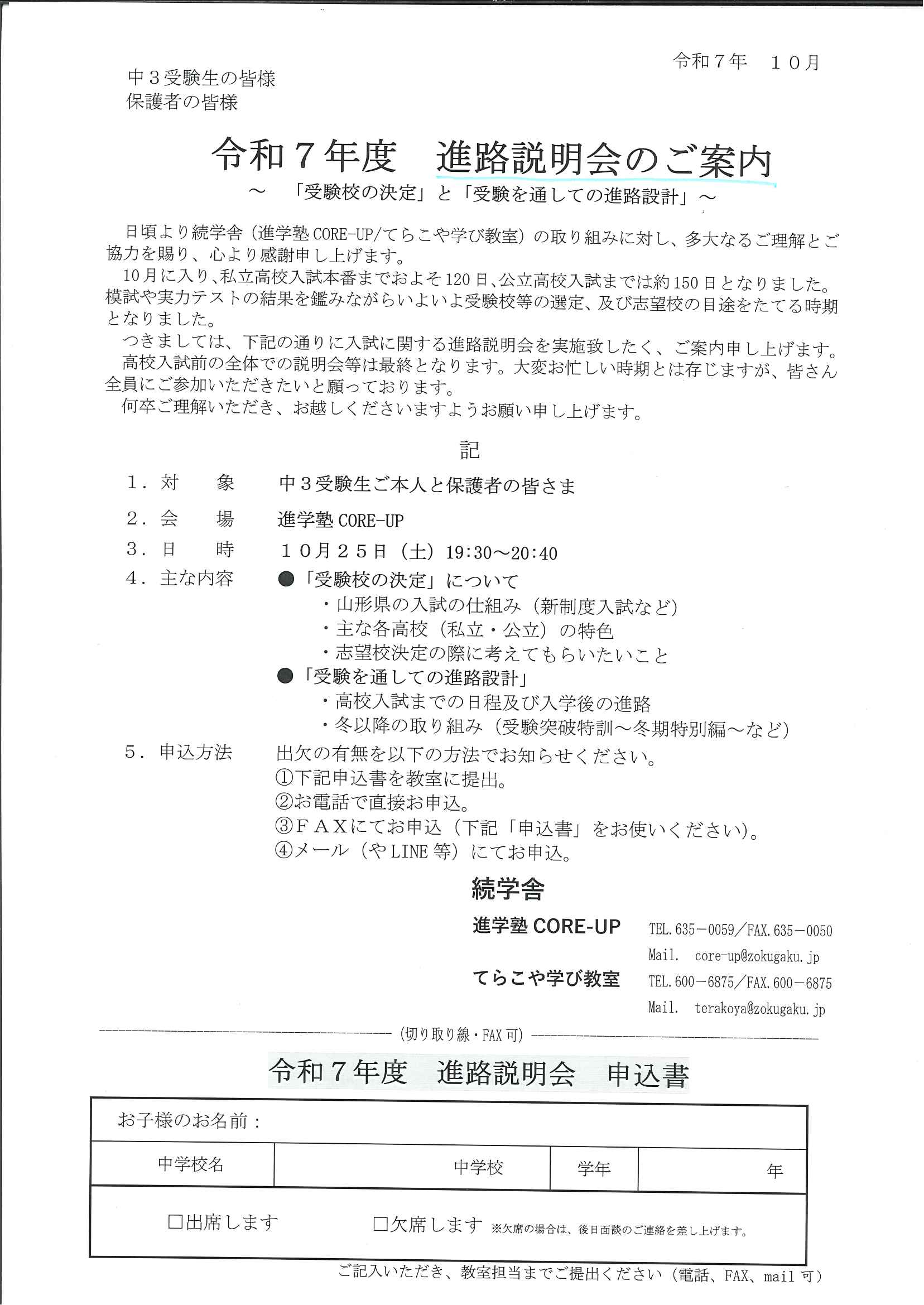 今月は、月末に予定の中3受験生対象「進路説明会」のお知らせを載せております。