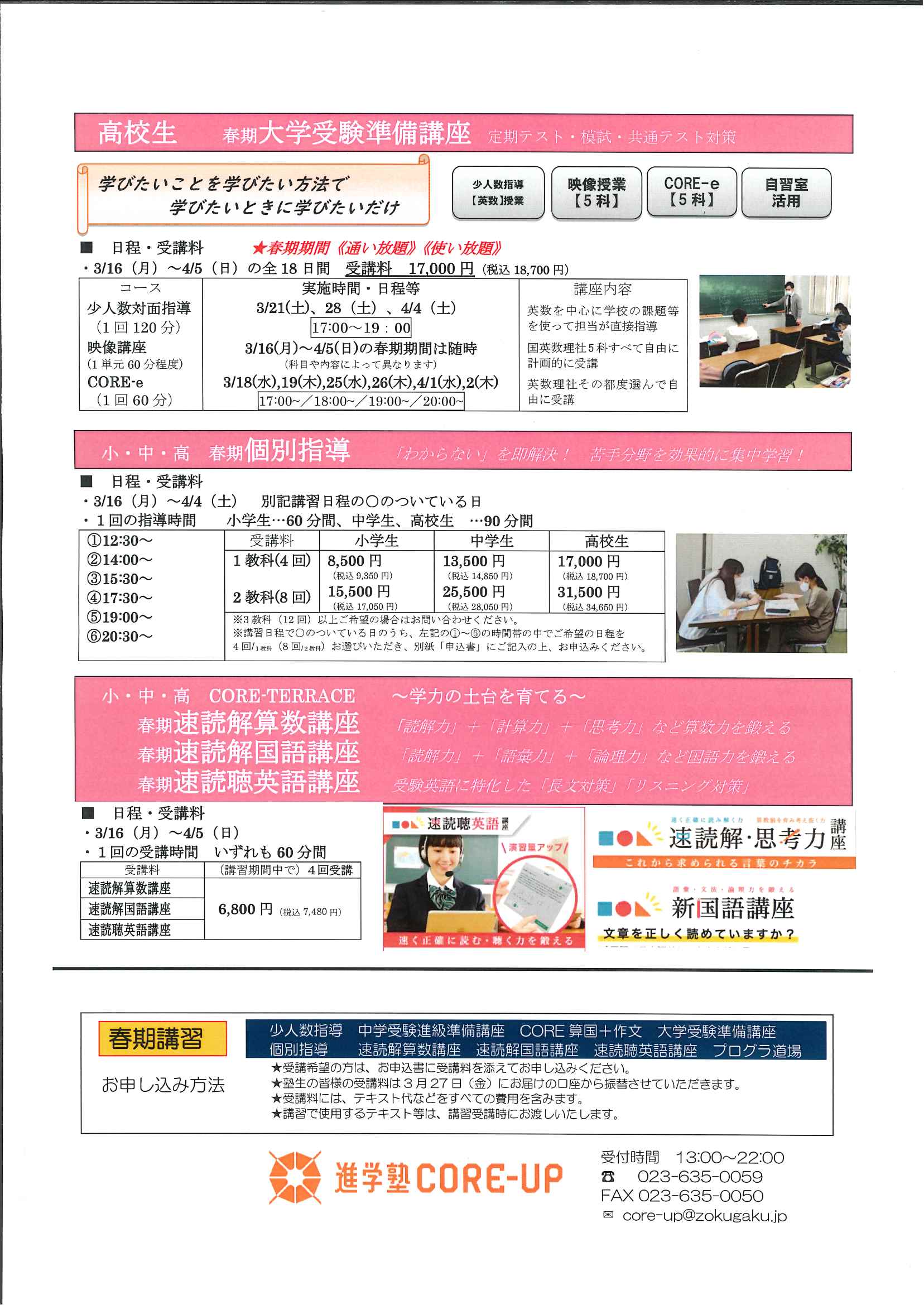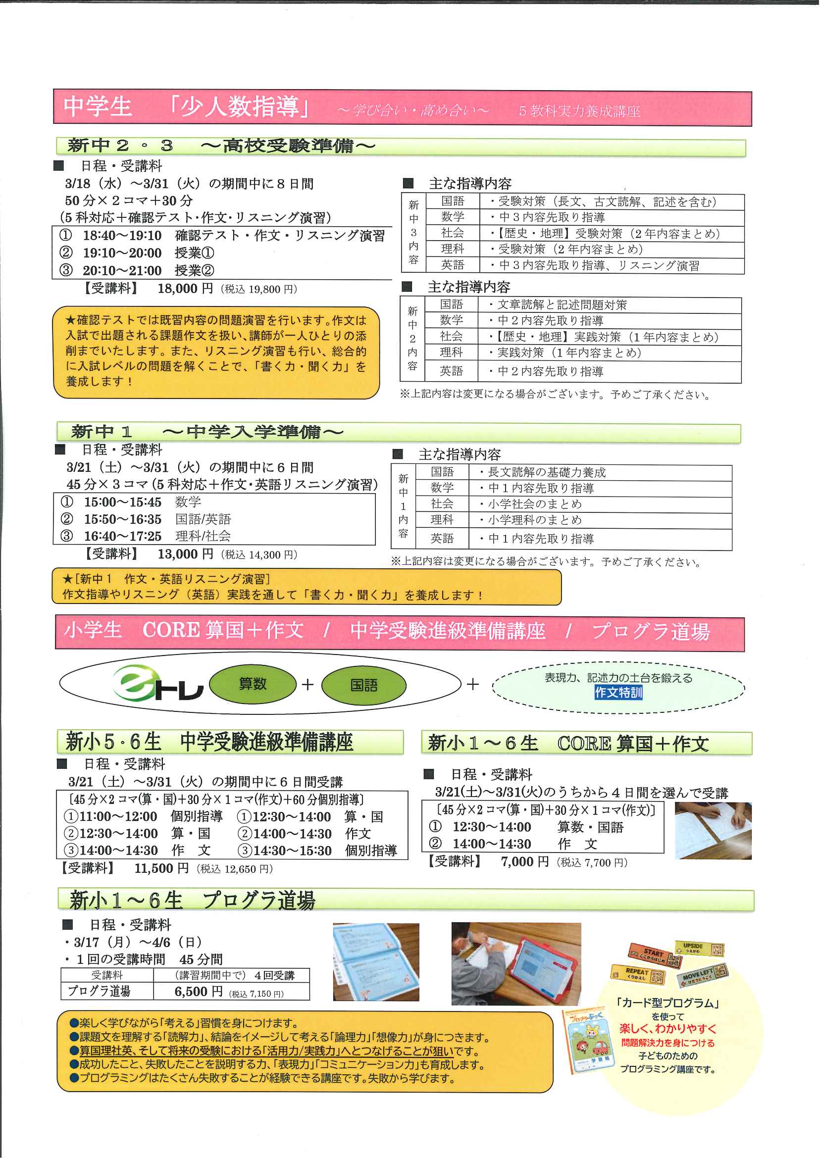 春期講習のご案内です(詳しくは下記パンフレット等をご覧ください)